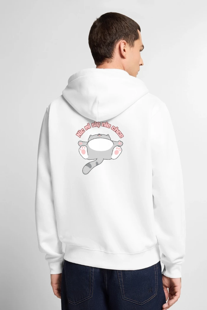 Zamek błyskawiczny umożliwia łatwe regulowanie temperatury, a kaptur z regulacją oraz praktyczne kieszenie dodają wygody i funkcjonalności. Wyrazisty nadruk „Nic mi się nie chce” podkreśla humorystyczny charakter bluzy.