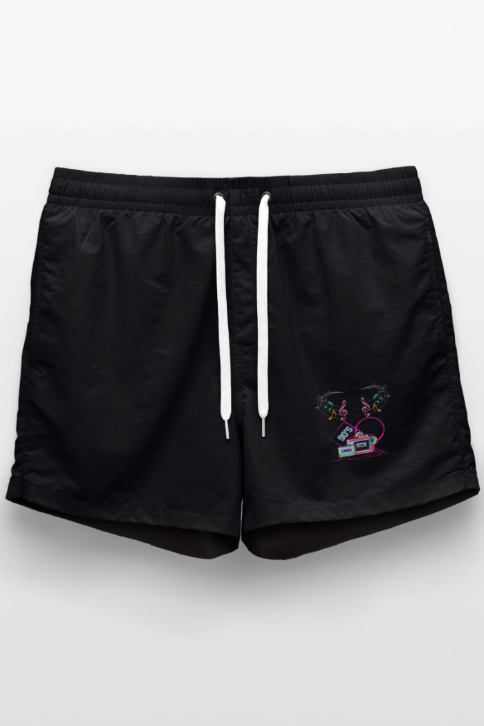 Męskie spodenki kąpielowe „Muzyka lat 90” to idealny wybór na lato dla fanów kultowych hitów, kaset i kolorowego stylu retro. Wykonane z lekkiego, szybkoschnącego materiału, gwarantują wygodę na plaży, basenie, podczas wakacyjnych wyjazdów i letniego wypoczynku. Luźny krój i elastyczna talia zapewniają swobodę ruchów i komfort przez cały dzień.