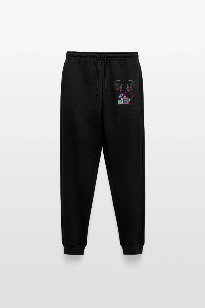 Męskie spodnie dresowe „Muzyka lat 90” to wygodne, stylowe dresy dla fanów kultowych hitów, kaset i oldschoolowego klimatu. Wykonane z miękkiego, elastycznego materiału, zapewniają komfort na co dzień, na spacer, trening, festiwal albo chill w domu. Luźny krój gwarantuje swobodę ruchów, a kolorowy nadruk inspirowany muzyką lat 90 wyróżnia z tłumu.
